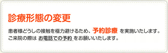 ※診療時間が変更となることがあります。 ご来院前にお電話にてご確認ください。