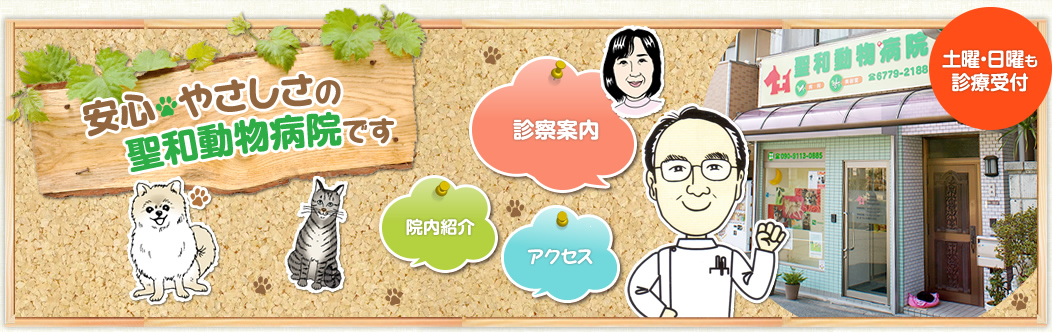 大阪市天王寺区の聖和動物病院です。天王寺、寺田町、桃谷の動物病院。イヌ・ネコの病院。土曜・日曜も受付。